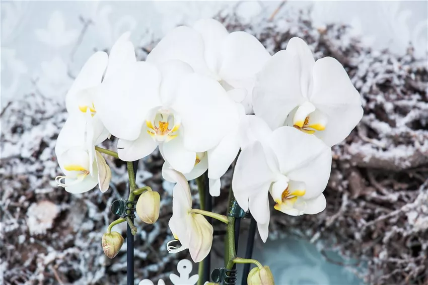 Phalaenopsis, weiß Auch als Haarschmuck ist die Orchidee besonders beliebt. An Festtagen wie einer Hochzeit ist das Stecken von echten Blüten immer wieder gern gesehen. Doch während viele andere Blüten einen Tag ohne Wasser kaum überstehen, können Orchideen-Blüten durch eine lange Haltbarkeit punkten. Friseur und Florist können hier mit Rat und Tat zur Seite stehen.
