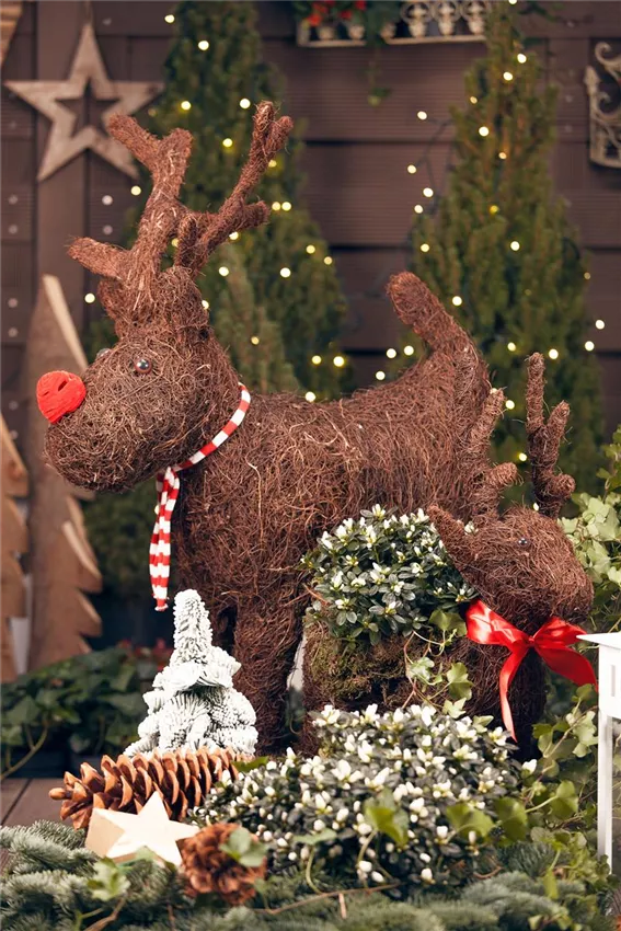 In der Advents- und Weihnachtszeit kann auch der Garten in festlichem Lichterglanz erstrahlen. Hierbei gibt es die unterschiedlichsten Spielarten, seien es Lichterketten, Erdspieße, Netze oder dreidimensionale Figuren, wie Rentierschlitten, Tannenbaum, Stern, Weihnachtsmann & Co. Die meisten der weihnachtlichen Gartenilluminationen werden durch elektrische Lichter bestimmt. Wer auf den ganz natürlichen Charme setzt, kann aber auch mit großen Gartenlaternen eine heimelige Stimmung schaffen. In denen dicke echte Wachskerzen oder alternativ LED-Echtwachskerzen flackern. Bei ersterem ist unbedingt darauf zu achten, dass sich in der unmittelbaren Nähe der Laterne keine leicht brennbaren Materialien befinden.