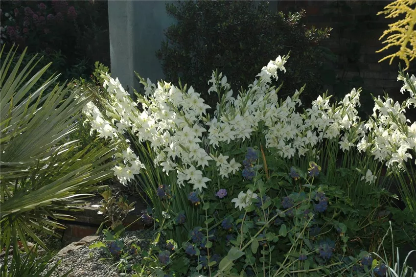 Wie an einem Schellenstab ragen die Blüten der Gladiole an aufrechten Stielen empor. Ihrer Blütenform hat die Gladiole den Beinamen „Schwertblume“ zu verdanken. Das eindrucksvolle Bild präsentiert die Gladiole ausdauernd von Juni bis Oktober. So robust sie auch sein mag: Den Winter übersteht sie nicht im Garten. Im Herbst zieht sich die Pflanze in ihre Knolle zurück – und die können Sie überwintern.