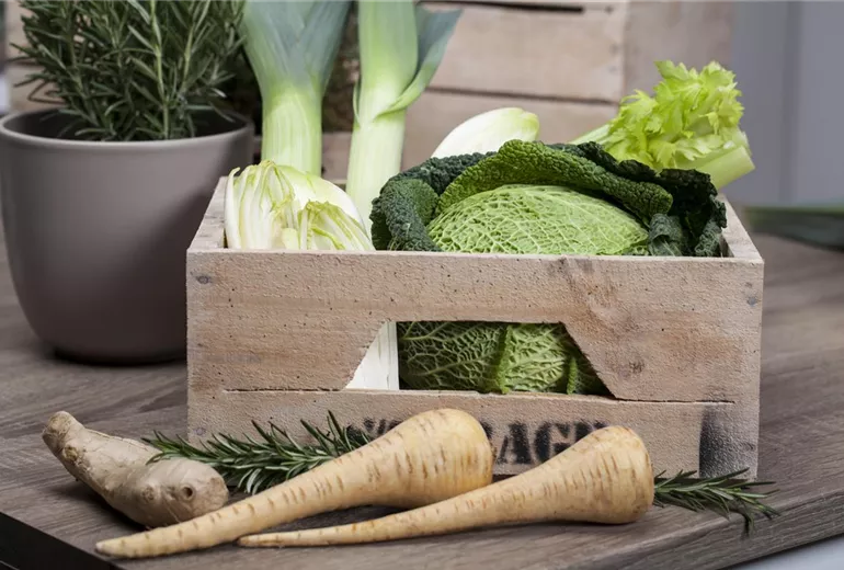 Im Garten, auf der Terrasse, auf dem Balkon oder in einem kühlen Keller kann das Wurzelgemüse in flachen Kisten gelagert werden. Um es dabei vor Austrocknung zu schützen, deckt man es mit Folie ab. Damit weder Vögel noch Mäuse an den Früchten knabbern können, sollten die Lagerfrüchte mit einem engmaschigen Drahtgitter geschützt werden. Eine weitere bewährte Lagermethode ist das Einschlagen in feuchten Sand. Dazu eine Kiste mit feuchtem, nicht nassem, Sand füllen und das Wurzelgemüse darin einschlagen. Die mit Stroh oder Laub bedeckte Kiste kann an einem kühlen Ort, wie zum Beispiel dem Keller bzw. auf dem Balkon aufgestellt oder im Garten in den Boden eingesenkt werden. Aber auch hierbei sollte ein enger Maschendraht zum Schutz vor Maus- und Vogelfraß eingesetzt werden. Traditionell lässt sich Wurzelgemüse in einer Erdmiete lagern. Dazu wird in die Erde ein Loch gegraben, welches mit einer Sanddrainage vor Nässe und mit einem feinmaschigen Gitter vor Mäusen geschützt wird. Abgedeckt wird die Grube durch Laub, Stroh oder einen Erdmantel und für den Luftaustausch sollte in den Deckel ein Schlauch oder gebogenes Rohr gesteckt werden. Ein Frühbeet kann zum Beispiel auch als Erdmiete verwendet werden, wenn es rundherum mit Isoliermaterialien gedämmt wird.