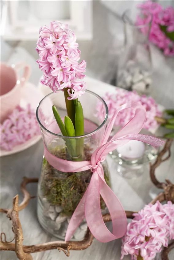 Amaryllis im Topf können Sie leicht zum Blühen bringen. Sorgen Sie für eine ausreichende Drainage und pflanzen Sie die Zwiebel so, dass sie ein Drittel über den Boden herausragt. Gießen Sie zu Beginn nur wenig und möglichst nicht direkt auf die Zwiebel. Sobald sie austreibt, braucht die Amaryllis mehr Wasser. Ihre Blüte hält die Blumenzwiebel länger, wenn sie kalt steht. Als Trockenzwiebel brauchen Amaryllis und Herbstzeitlose kein Wasser und keine Erde. Sie haben so viel Energie in ihrer Zwiebel, dass sie einfach so aufblühen. Legen Sie sie auf eine Schale mit Moos oder Steinen und sorgen Sie so für einen Überraschungseffekt auf der Fensterbank! Auch im Wasserglas kann man Amaryllis ziehen. Sehr bekannt sind hierfür auch Hyazinthen. Diese legen Sie in ein so genanntes Hyazinthenglas. Dessen besondere Form sorgt dafür, dass die Zwiebel knapp über dem Wasser aufliegt, aber nicht darin versinkt. So können die Wurzeln dem Wasser entgegenwachsen und wenn sich die Blütenknospe vollständig entwickelt hat, löst die Hyazinthe im Wohnzimmer Frühlingsgefühle aus!