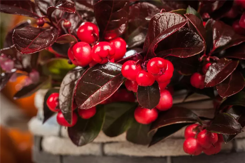 Gaultheria procumbens Es gibt Pflanzen, die sollte man lieber im Beet lassen. Bei der Scheinbeere ist das aber definitiv nicht der Fall! Klar, im Blumenbeet macht sie auch eine sehr gute Figur und sorgt für Farbtupfer im Garten, aber als Dekoration eignet sie sich auch hervorragend. Dafür muss man die Scheinbeere nicht mal schneiden oder aus ihrem Topf holen. Scheinbeeren passen perfekt in herbstliche und weihnachtliche Arrangements auf dem Esstisch, dem Wohnzimmertisch, dem Bücherregal, der Terrasse oder wo immer wie stimmungsvoll dekorieren wollen.
