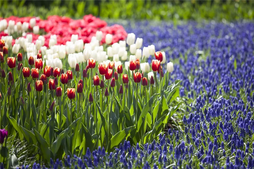 Bei im Frühling und im Sommer blühenden Blumenzwiebeln unterscheiden sich die Jahreszeiten, in denen sie gepflanzt werden. Frühblüher wie Tulpe, Narzisse und Co. werden im Herbst vom Eintreten des Frostes gepflanzt. Optimal ist die Zeit von September bis zum ersten Frost. Sommerblühende Blumenzwiebeln werden ab März in den Garten gesetzt. Gepflanzt werden können diese Blumenzwiebeln bis in den Frühsommer und sorgen noch im selben Jahr für bunte Farbkleckse im Beet. Blumenzwiebeln werden in einer Tiefe von etwa dem Dreifachen des Zwiebeldurchmessers gepflanzt. Sollte der Boden im Garten sehr schwer und lehmig sein, lohnt es sich, den Gartenboden mit Sand aufzulockern. Das verhindert, dass die Blumenzwiebeln anfangen zu faulen. Blumenzwiebeln können nahezu überall in den Garten gesetzt werden: ob im Beet, in Rabatten oder unter den Rasen – der Kreativität sind keine Grenzen gesetzt. Nur die im Sommer blühenden Blumenzwiebeln eigenen sich weniger für das Einpflanzen unter dem Rasen, weil sie im Herbst wieder aus der Erde geholt werden müssen.