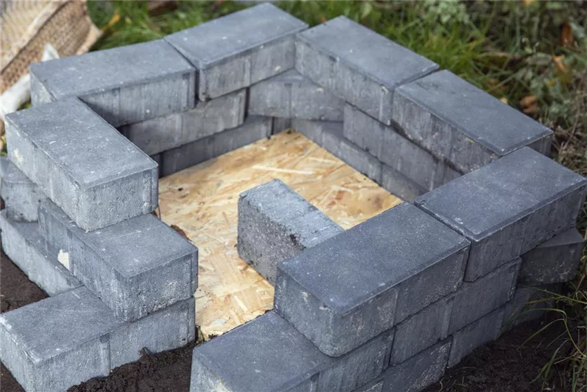 Wird das Igelhaus in einem bewachsenen Beet gebaut, sollte der Untergrund unbedingt eben sein. Ist das nicht der Fall, könnten die Steine wackeln und das Igelhaus im schlimmsten Fall sogar über dem Igel einstürzen. Da das unbedingt vermieden werden muss, wird der Boden vorher begradigt oder das Igelhaus an einer ebenen Stelle platziert. Eines der Bretter dient als Fußboden und findet auch genau dort seinen Platz. Die Steine werden dann rund um das Brett herum gelegt. An einer sichtgeschützten Stelle sollte eine Öffnung mit ca. 10cm Breite gelassen werden. Auf die erste Schicht Steine wird eine Zweite gelegt, die komplett über die erste Schicht, auch über die Lücke, gelegt wird. Bei normalen Backsteinen reichen drei Schichten, damit das Igelhaus für den kleinen Igel die optimale Größe hat.